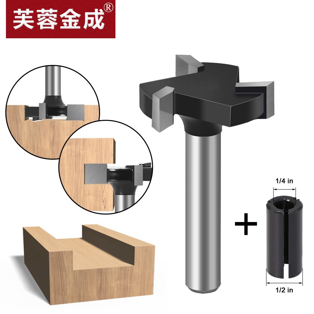 1/4柄6柄三刃T型刃スロットナイフ溝切りナイフ木工フライスカッターT型ほぞ