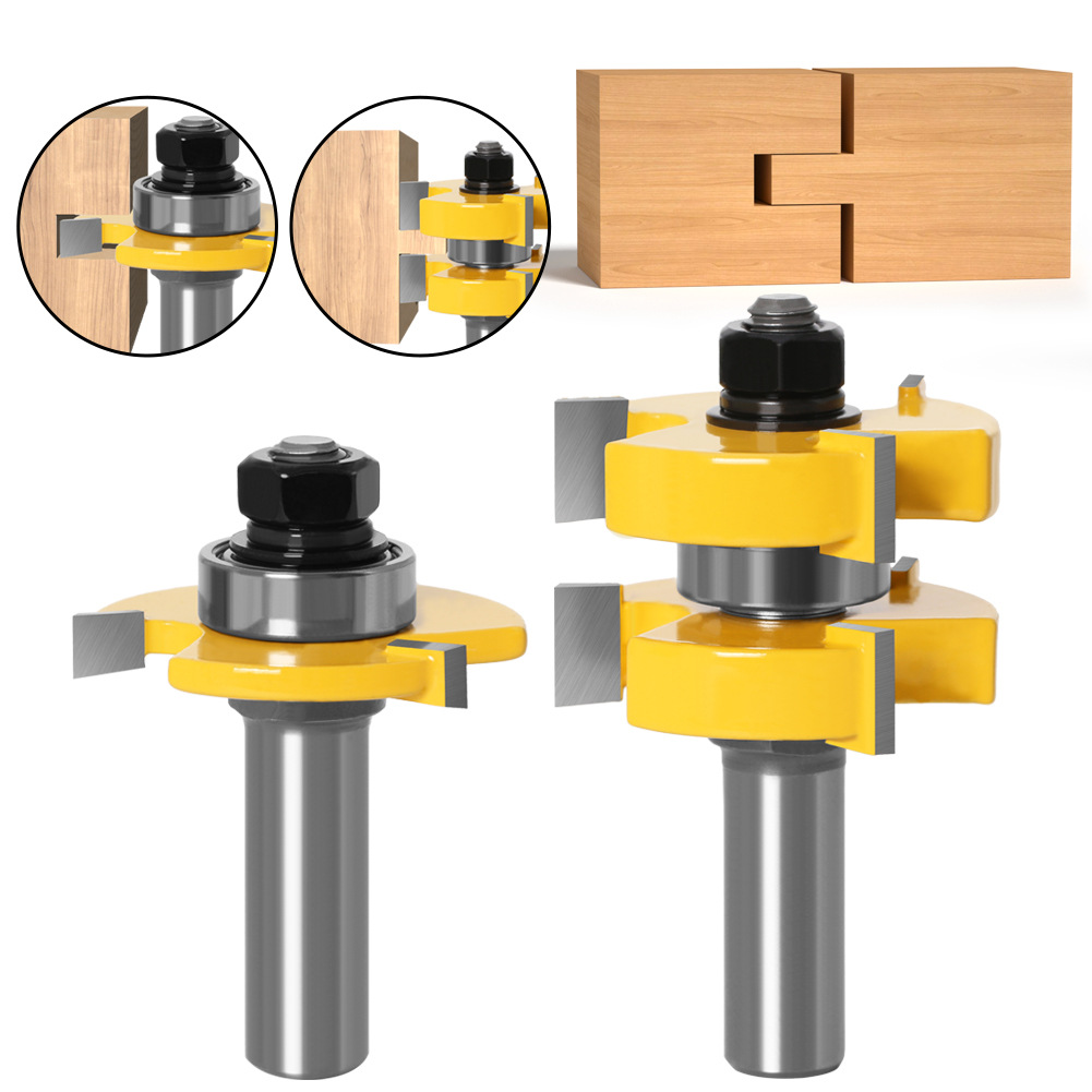 3歯T型ほぞ合刀セット溝切り刀結合木工フライス1/2*1/2*6.35盤刀床刀