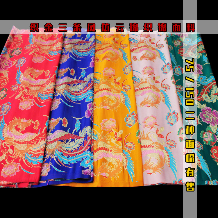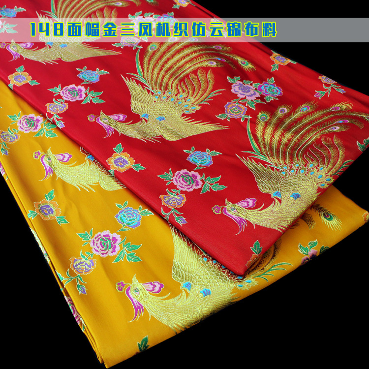 鳳凰の図案の布地は厚くて、幅を厚くして、雲錦の錦織の金の布地の秀禾の服の子供服の年服の材料をまねます。