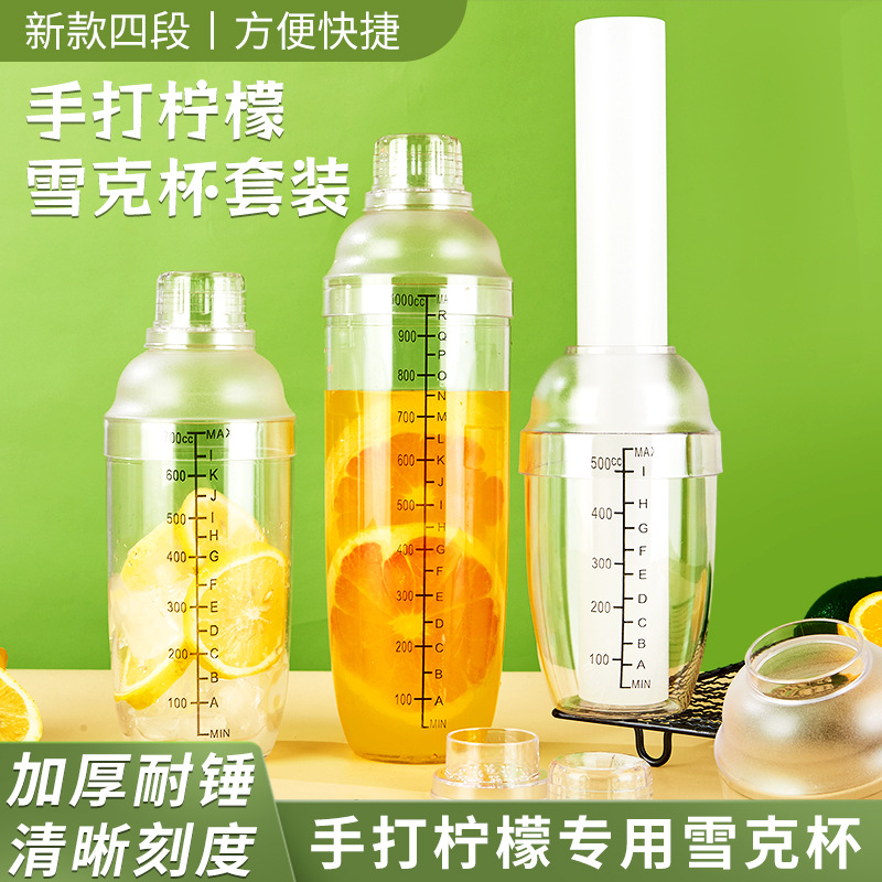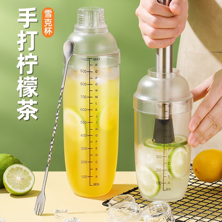 手摇雪克杯三件套塑料调酒器摇奶茶器皿暴打柠檬有刻度水果冰块