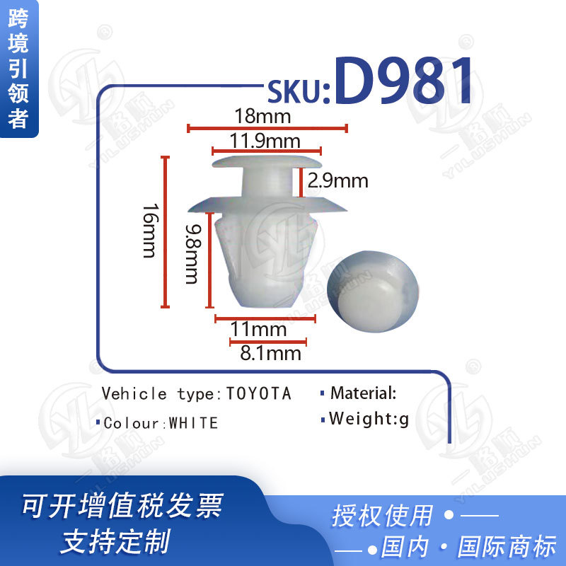 Dinghui スナップは、ユニバーサル車のドアパネルガードクリップスカートライニングホイールアイブリッジ固定スナップ D1151 に適しています。