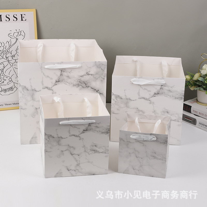 大理石のハンドバッグクラフト紙袋大きな正方形のギフトバッグフラワーハンドバッグベーキングギフト包装袋