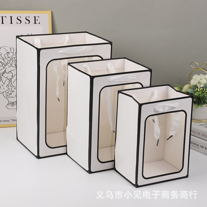 ギフトバッグバレンタインデーの花の花束包装袋既製ウィンドウバッグ透明ウィンドウハンドバッグクリエイティブギフトバッグ