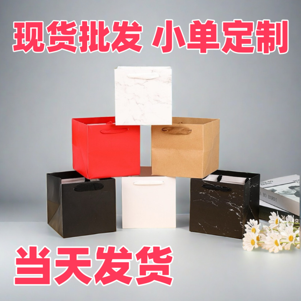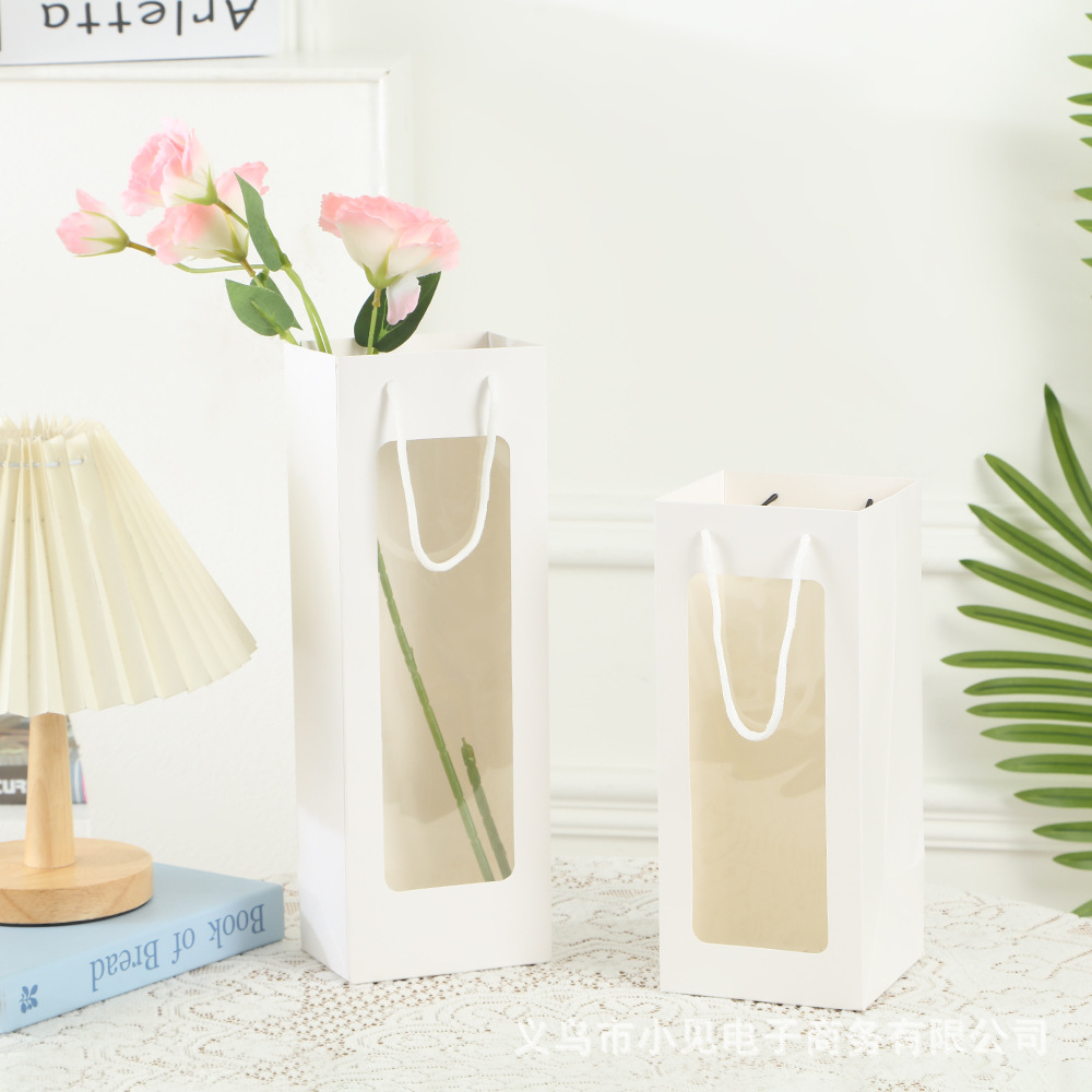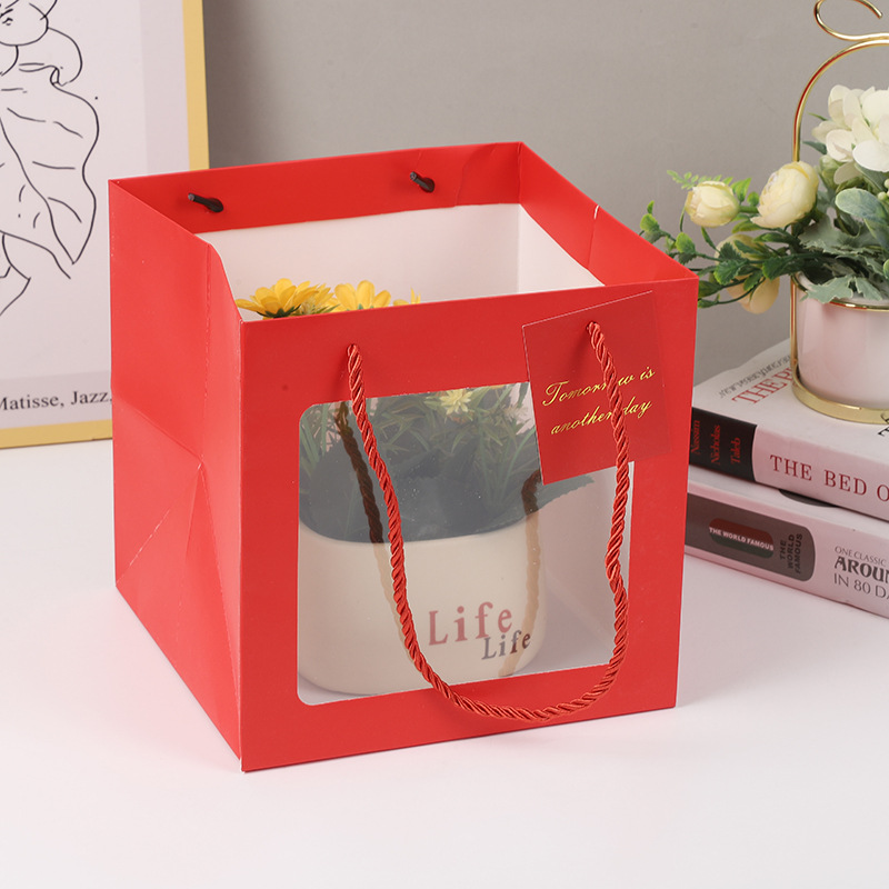 ギフトバッグ 厚手牛革紙袋 正方形 透明ハンドバッグ 花や鉢植えの包装袋 跨境ギフトバッグ