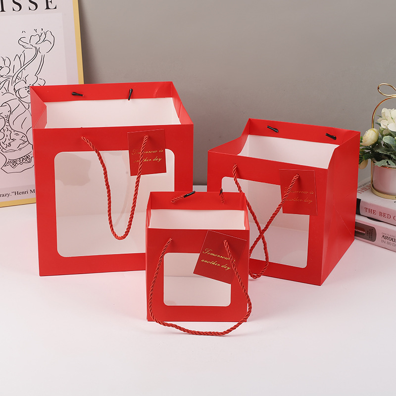 ギフトバッグバレンタインデーウィンドウ透明ハンドバッグ誕生日花花束紙袋ギフトバッグ包装袋