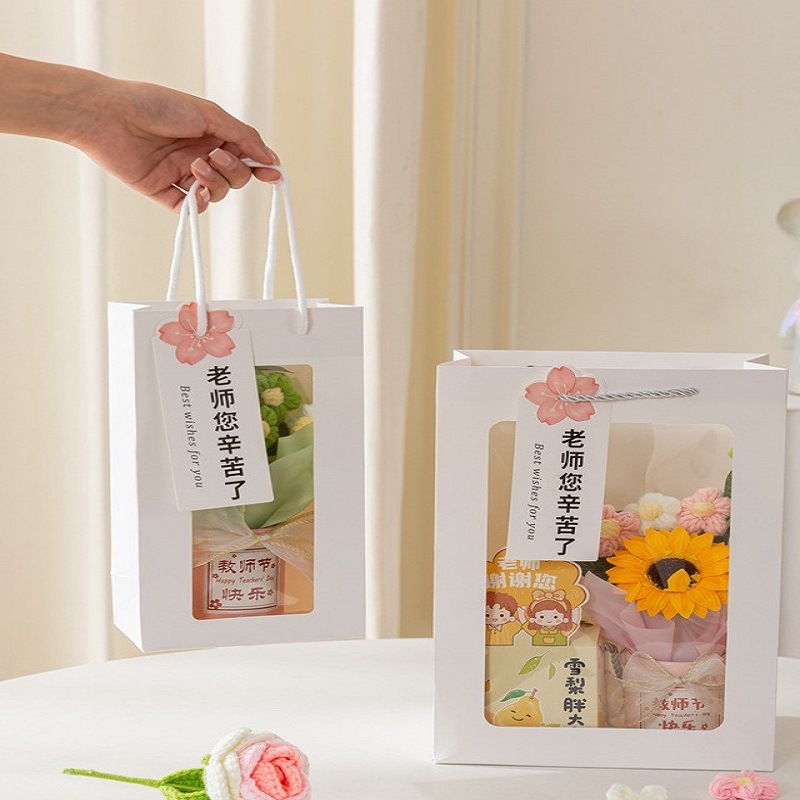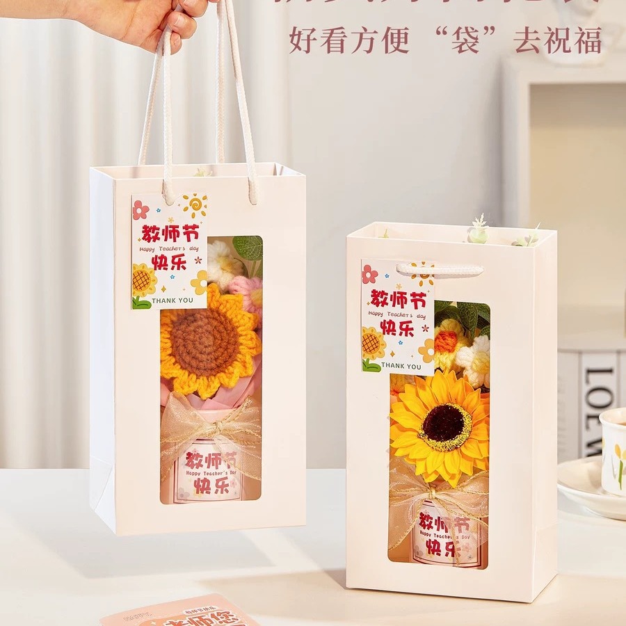 教師の日ギフトバッグ 誕生日 手編みひまわりハンドバッグ ギフトボックス 紙袋 ギフト ウィンドウ包装袋