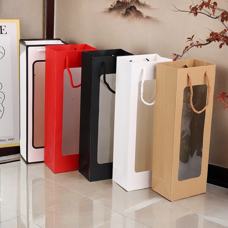 ワインバッグ生花バッグ手提げ袋透明ショーウインドーギフトバッグお土産袋純色長方形手提げ花束紙袋
