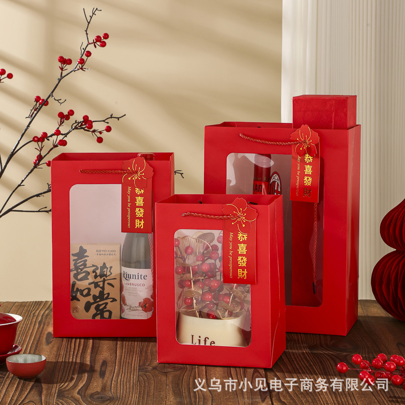 2025旧正月蛇年手提げ袋透明ショーウインドーお土産袋年次総会赤い開窓ギフトバッグ新年ギフトバッグ