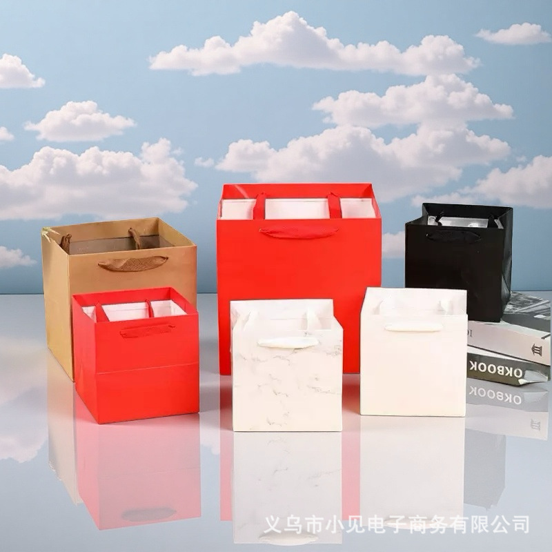 花の出前の正方形の梱包袋は花束ケーキを厚くして紙袋の現物の四角い底の包装紙袋を収納して注文します。