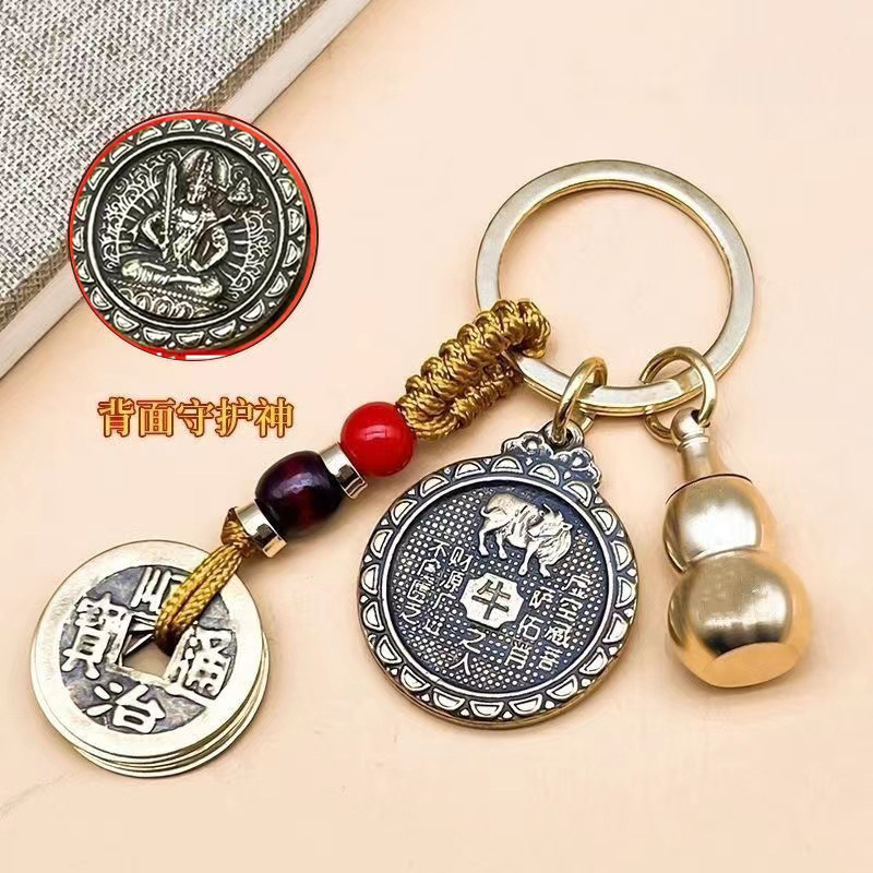 新型銅蓮花仏壇十二生肖八大守護本命仏開口ひょうたん五帝銭キーホルダー卸売り