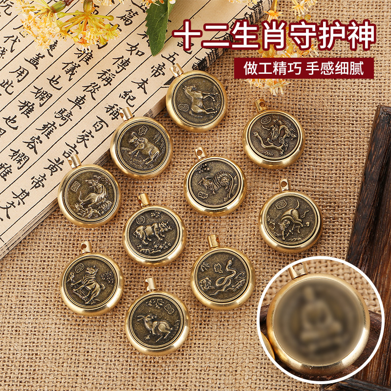 真鍮の新型蓮花仏壇十二生肖八大守護本命仏中実のキーホルダーペンダントメーカー卸売り
