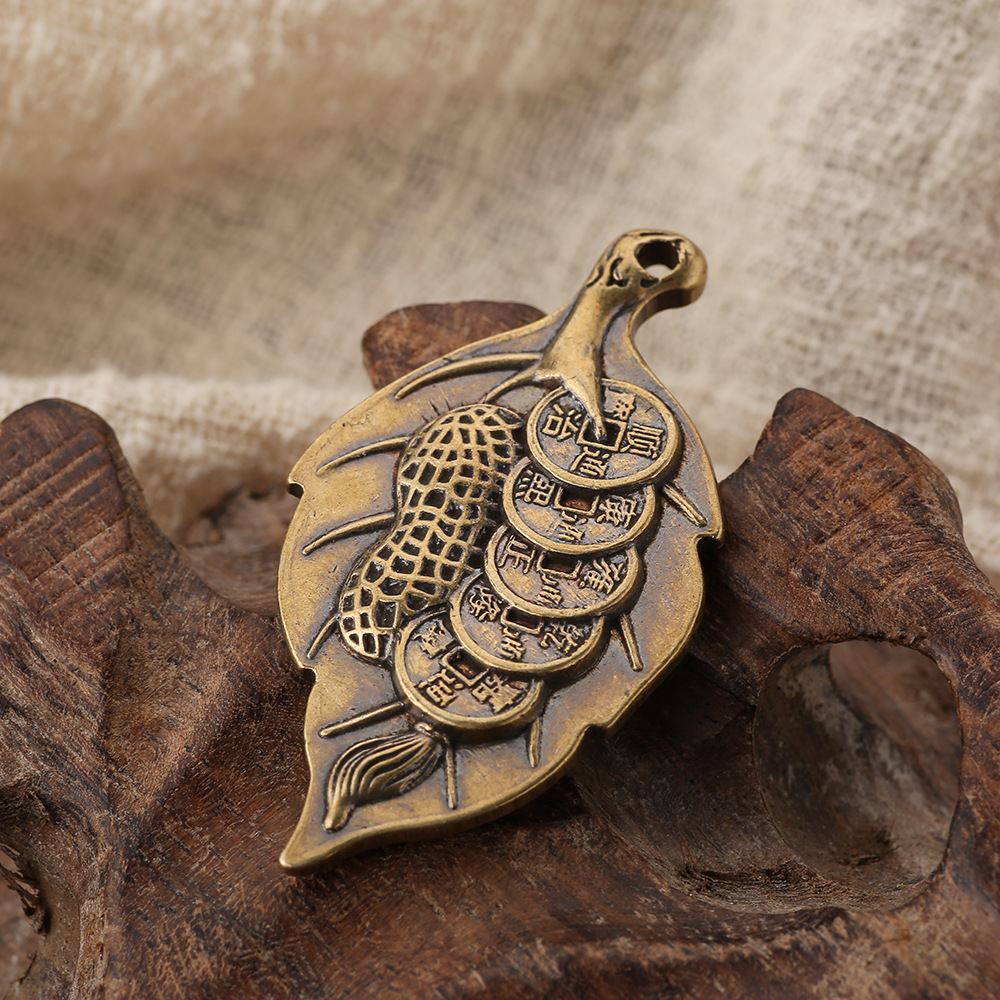 真鍮レトロ一葉生財部品銅銭木の葉自動車キーホルダーキーホルダーメーカー卸売り