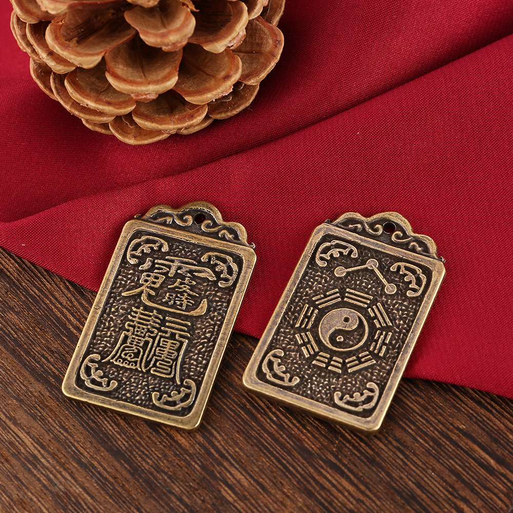 黄銅太極陰陽魚八卦太歳牌破太歳鍵掛け皮時大将軍本命年ストラップ