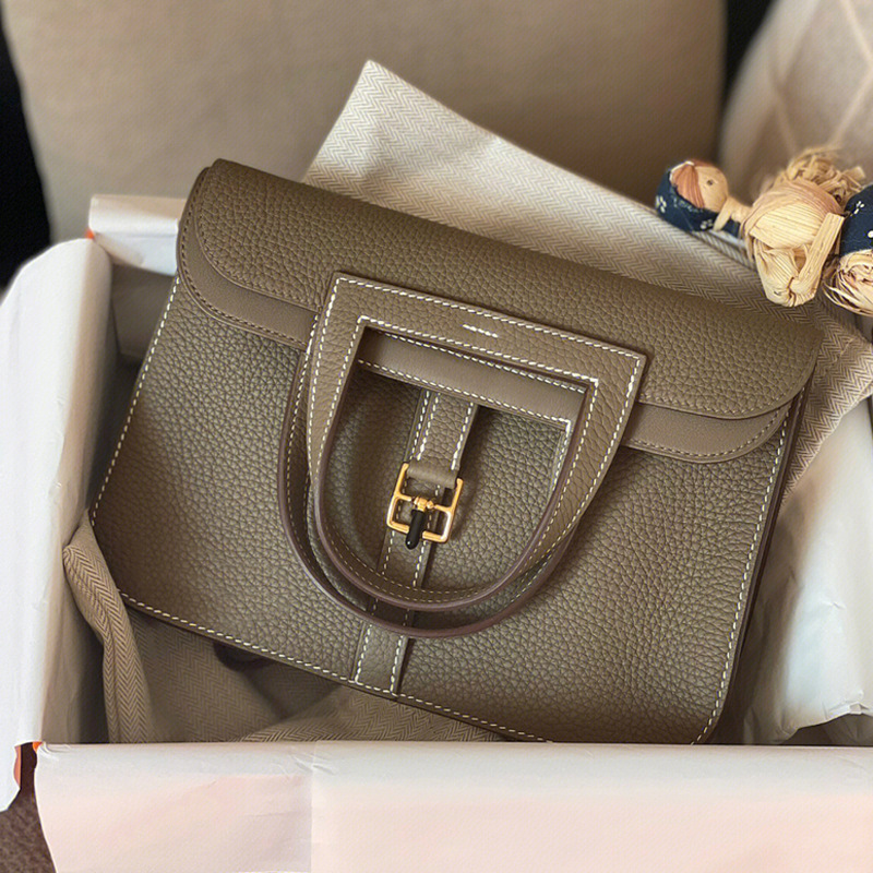 新品手縫いワックス糸ハザンバッグ本革レディースカバン牛革馬蹄カバンワンショルダー斜めがけバッグハンドバッグ25cm