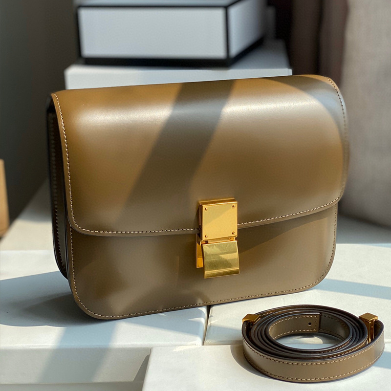 Box鏡面豆腐バッグ牛革女性カバンロックボタン小方バッグ空姉バッグシングルショルダーバッグ凱旋門脇下バッグ