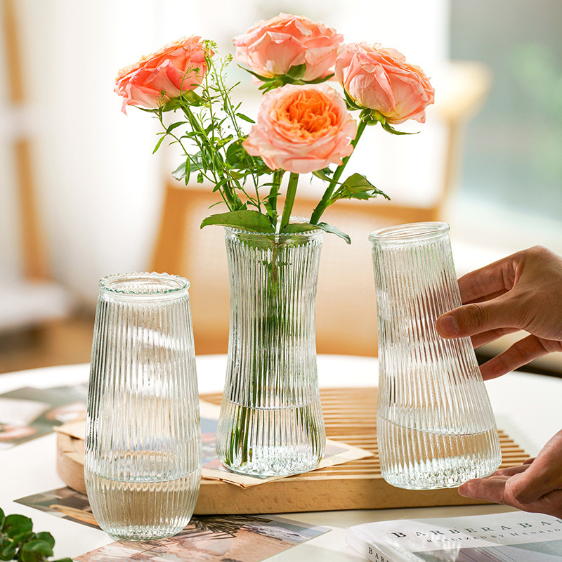 シンプルな現代ガラス花瓶高颜値風小口花瓶客間デスクトップ水養生け花装飾品