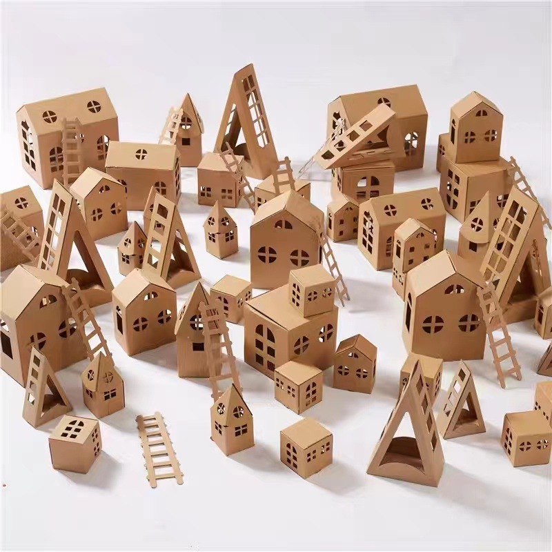 幼稚園の板紙の家の夢幻の小鎮の環創材料の建築区のアートワークの手作りの紙箱の城の小屋