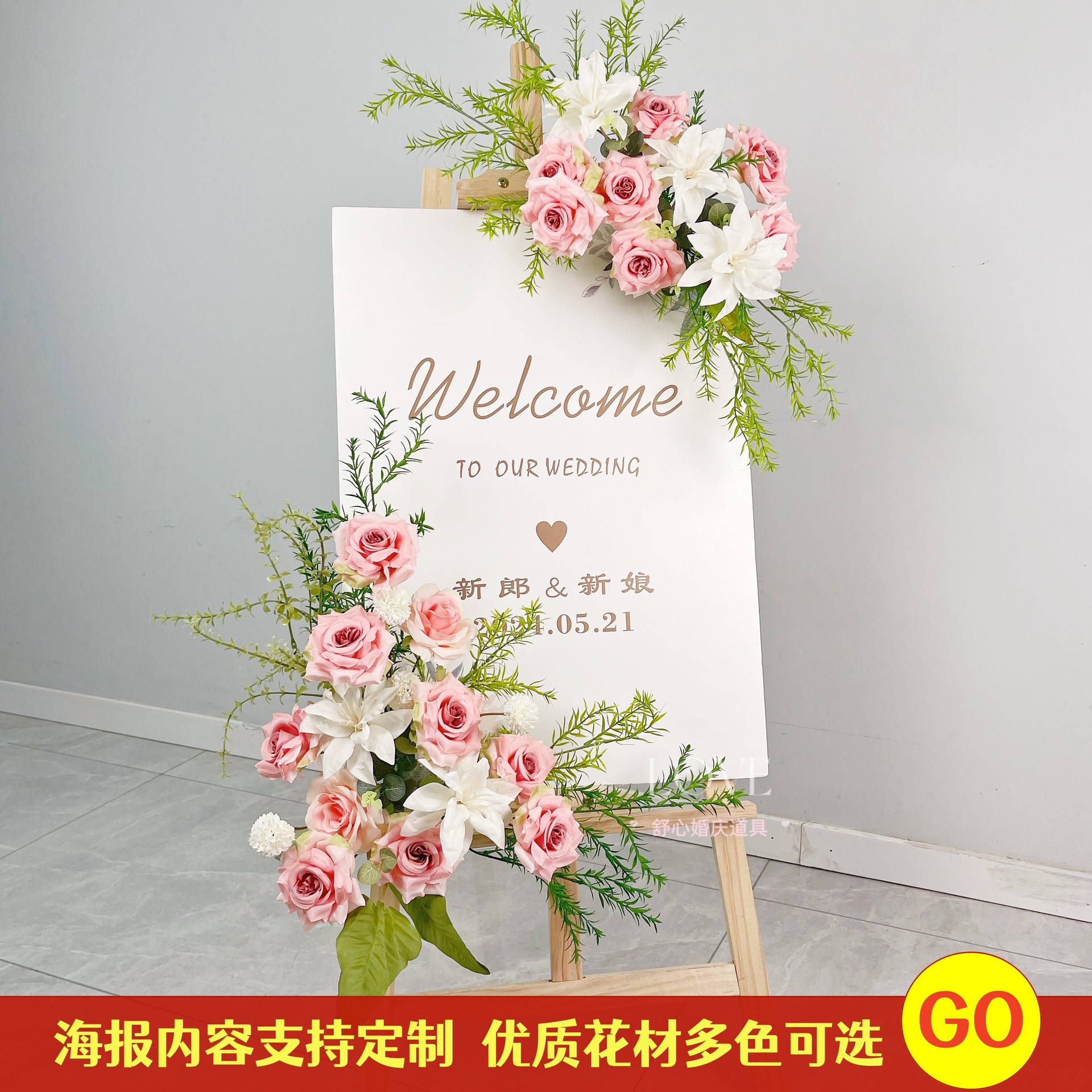 門頭花造花迎賓牌花開業結婚式祝典水牌花板花指示牌花芸掛花