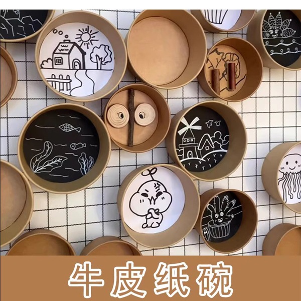 クラフト紙の碗の幼稚園の環は創意のテーマの壁面を作って子供の手作りの小学生の美術の材料を飾ります。