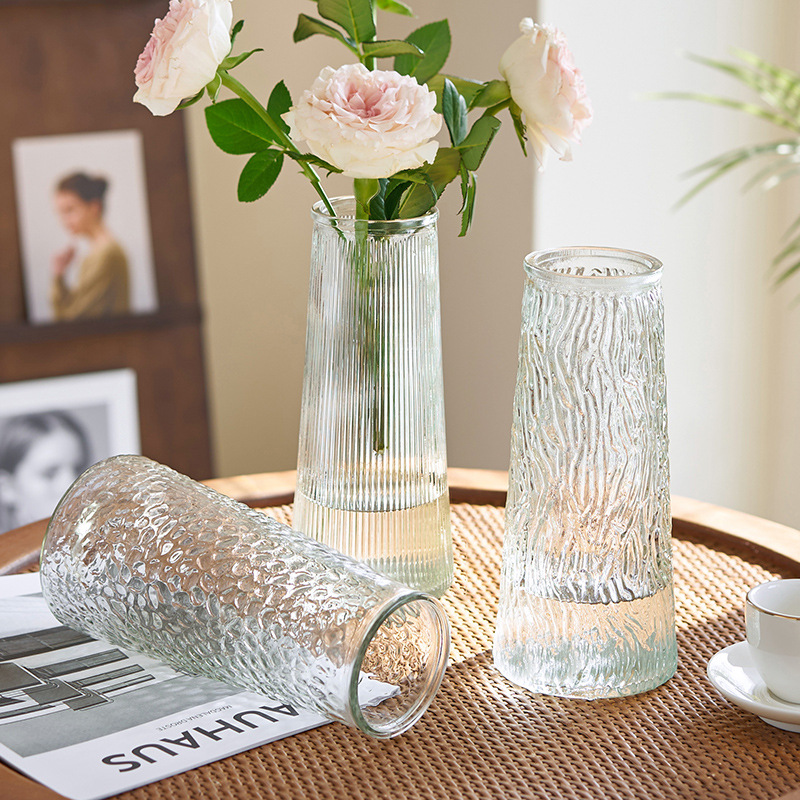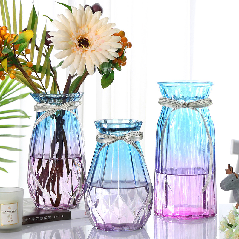 【三点セット】ガラス花瓶カラー透明水培富貴竹百合花瓶創意リビング生け花置物