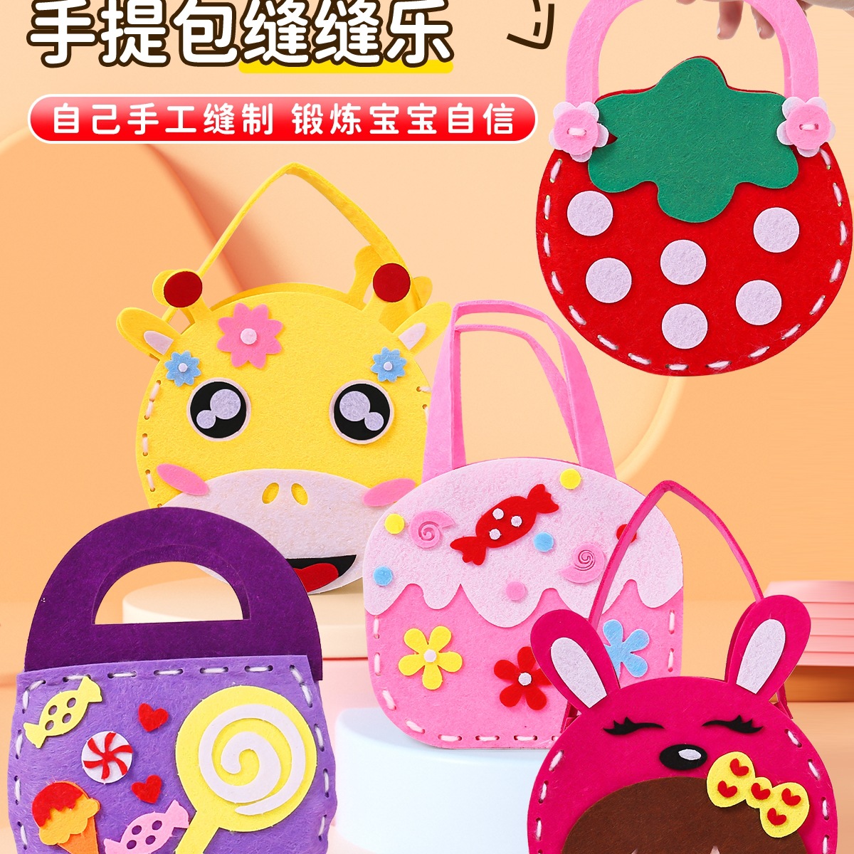 子供の縫い目楽しい不織布幼稚園のアイデア手作り材料バッグ手作りバッグ女の子おもちゃ絹花