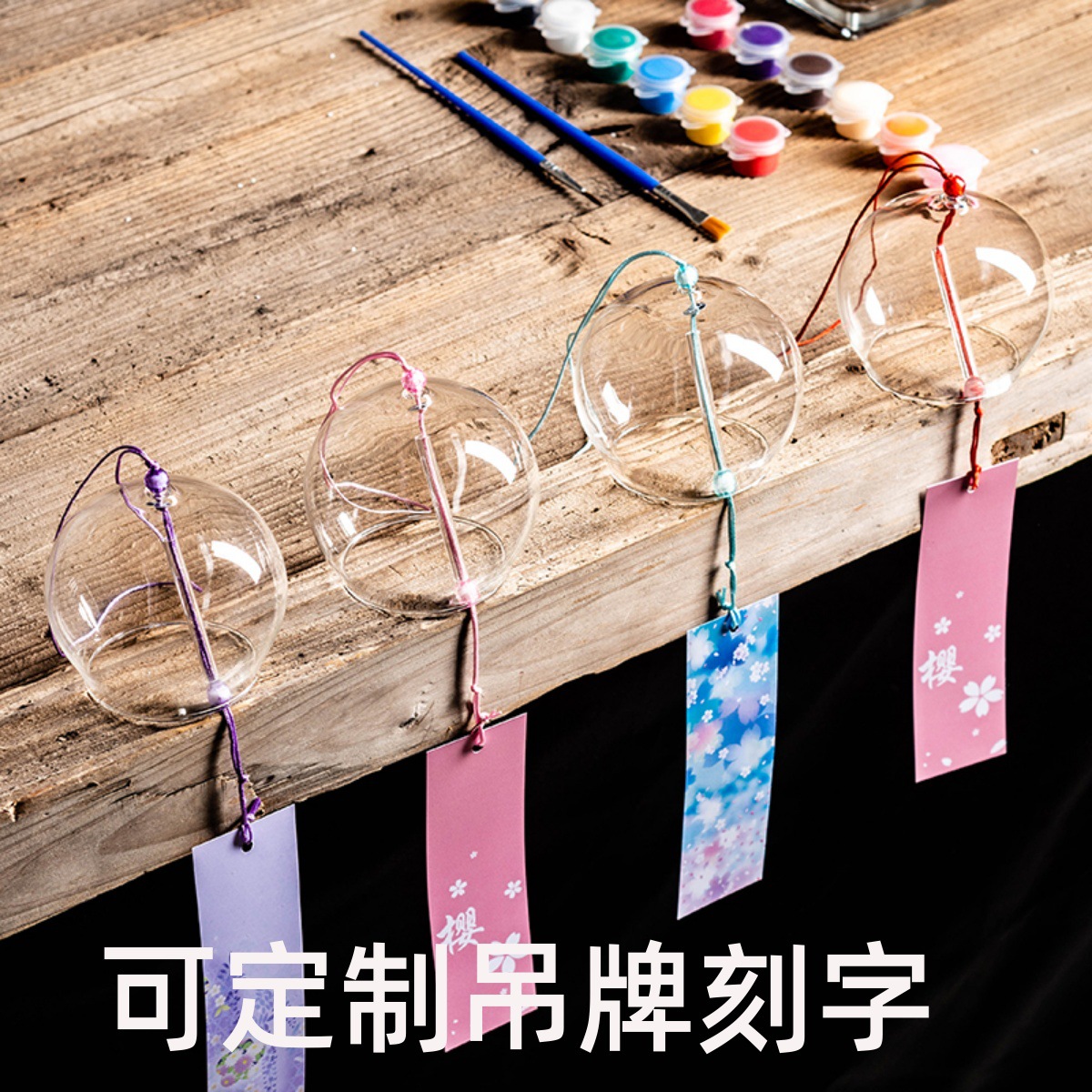 創意風鈴材料日本式透明ガラス風鈴飾り鈴絵画手作り活動落書き風鈴