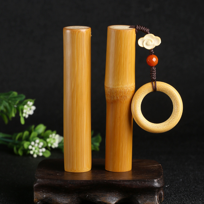 古い材料の玉竹の実心の竹の手の件の竹の彫刻の竹の心は百福の正円の天然の黄色の皮の文を経て水晶の材料を遊びます。