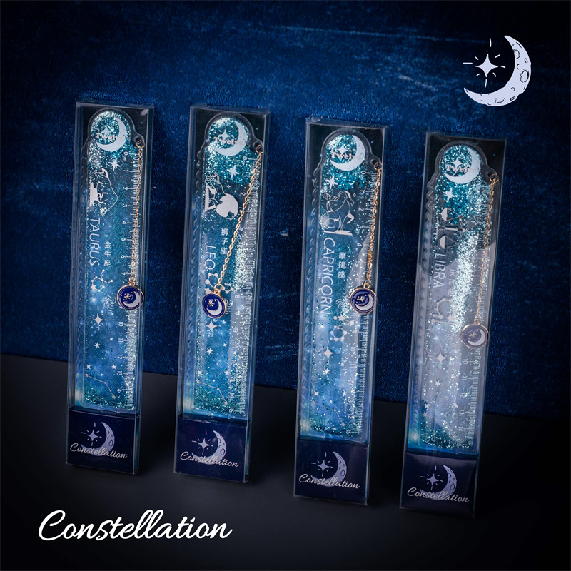 十二星座創意入油流砂定規波線可愛い少女心絵画定規学生文房具ペンダント