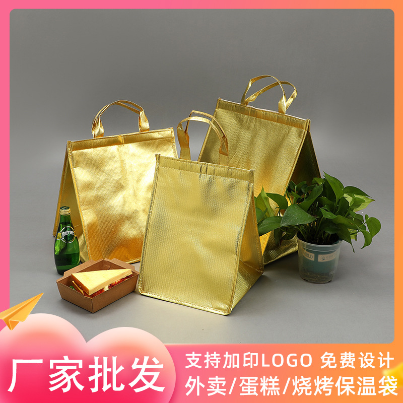 金色ケーキ保温袋卸売り不織布レーザーフィルム販売保温袋冷蔵新鮮保持弁当保温バッグ