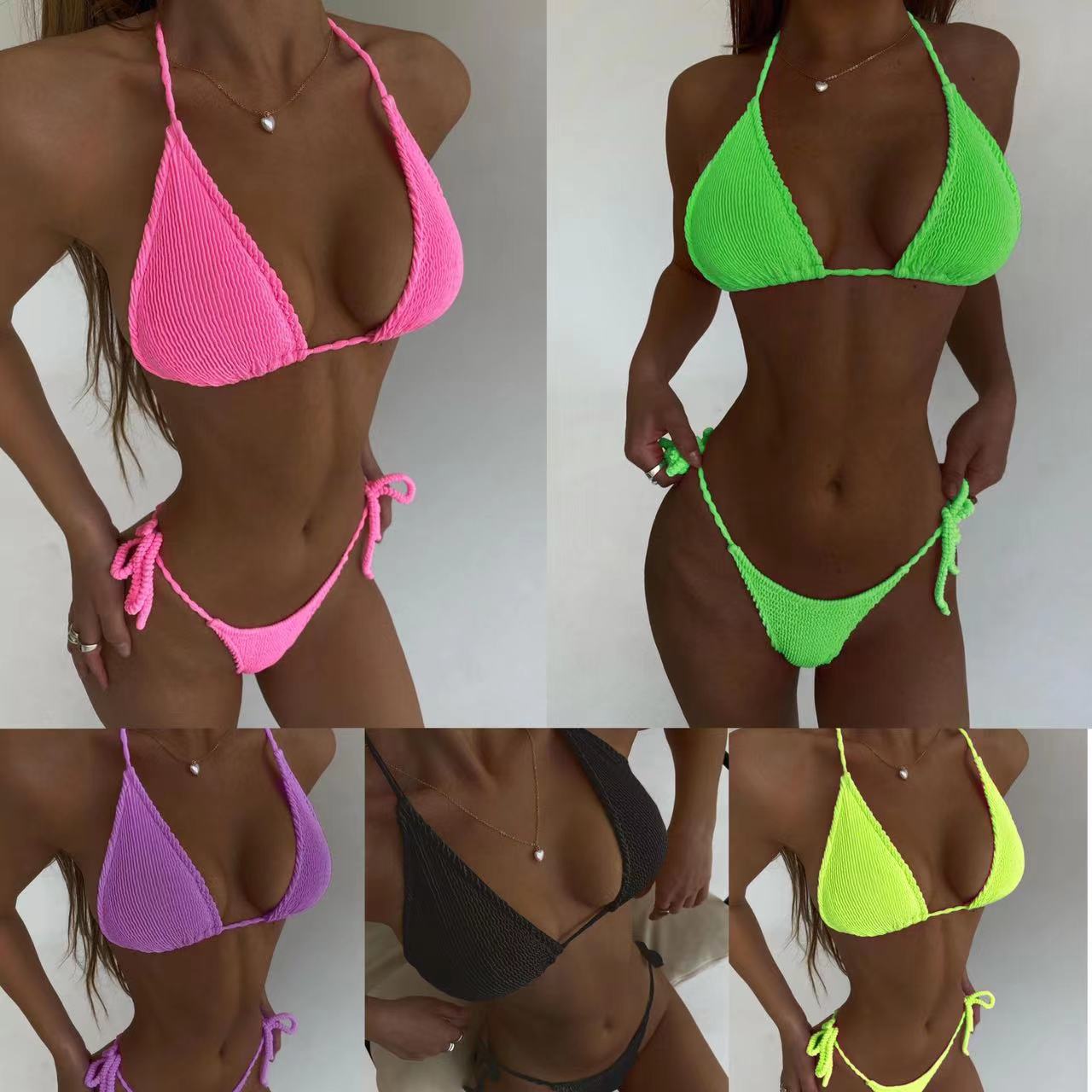 2024特殊生地ひもビキニbikiniセクシー蛍光色分体女性水着欧米アマゾン
