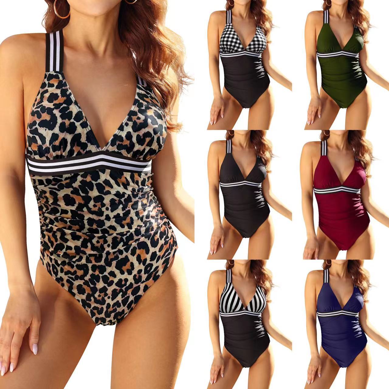 2024年新作 欧米風水着 Vネックワンピース水着 レディース レオパード柄ビキニ クロスボーダー速売通bikini
