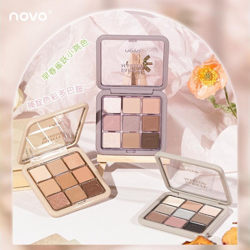 NOVO九色アイシャドー盤の国産品の化粧の大地の色の真珠の光のマットの爆発金の九宮格の日常の薄い化粧の女性の平価です。