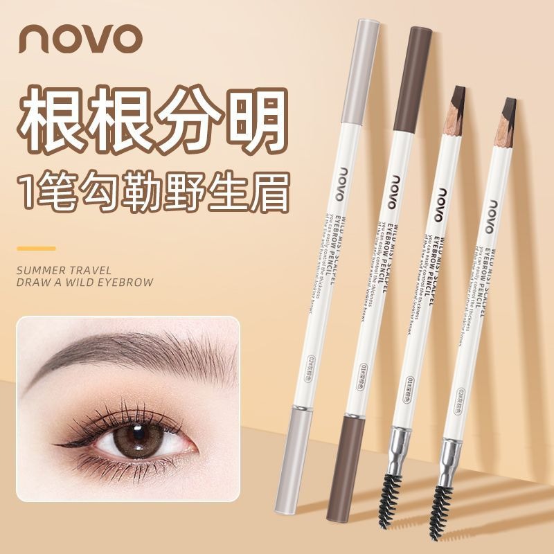 NOVO ワイルドミスト感カーバンダルダブルヘッドアイブロウペンシル、自然な発色、女子学生や怠け者向け、自然な眉根、国産