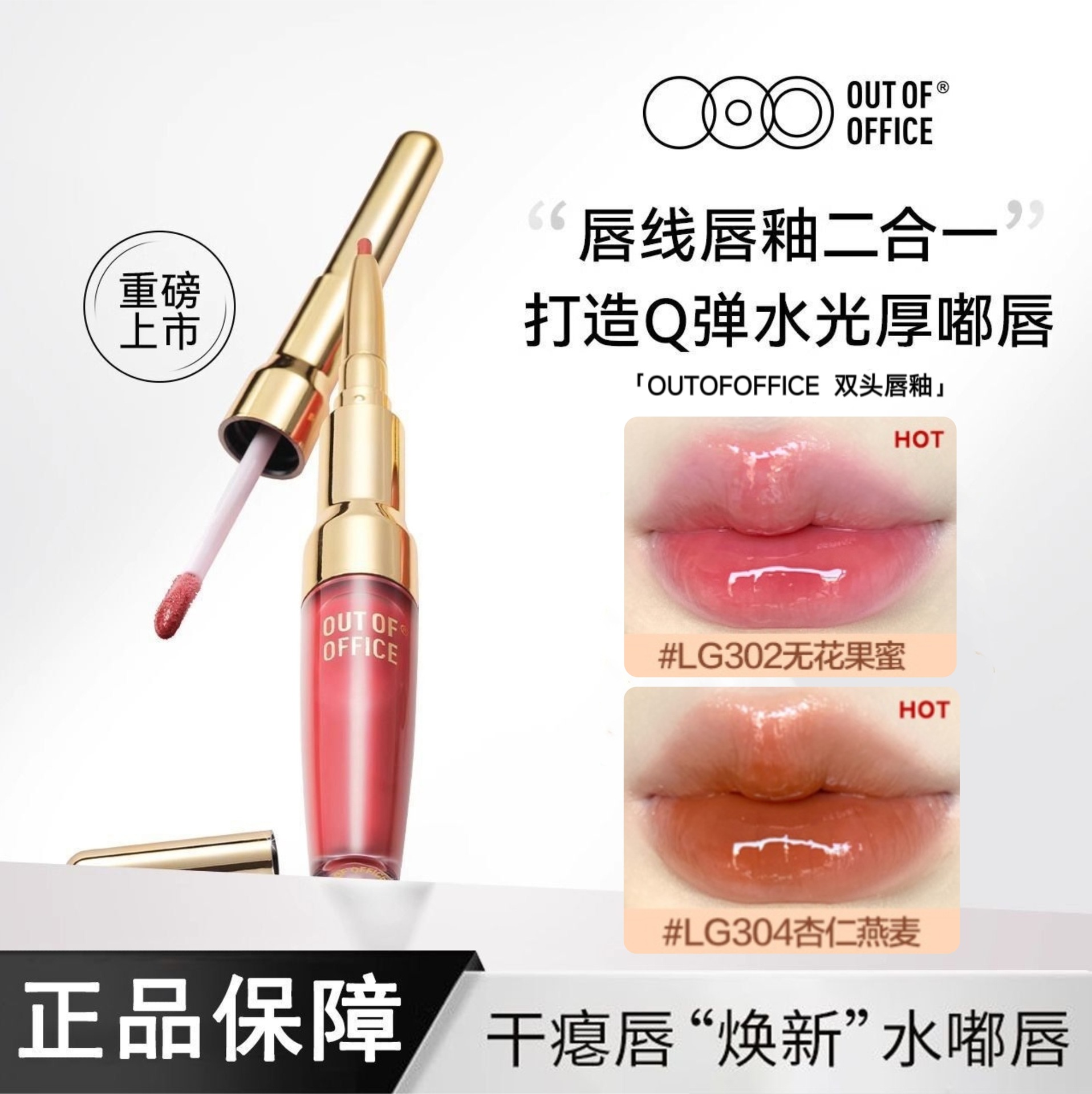 OUT OF OFFICEよ野OOO双頭繊維彫刻精華唇釉水筆唇蜜水光鏡面女性新人