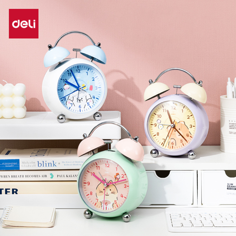 デリ LE333 グラデーションベル目覚まし時計寝室ナイトライトサイレント時計クリエイティブギフト学生ベッドサイド時計