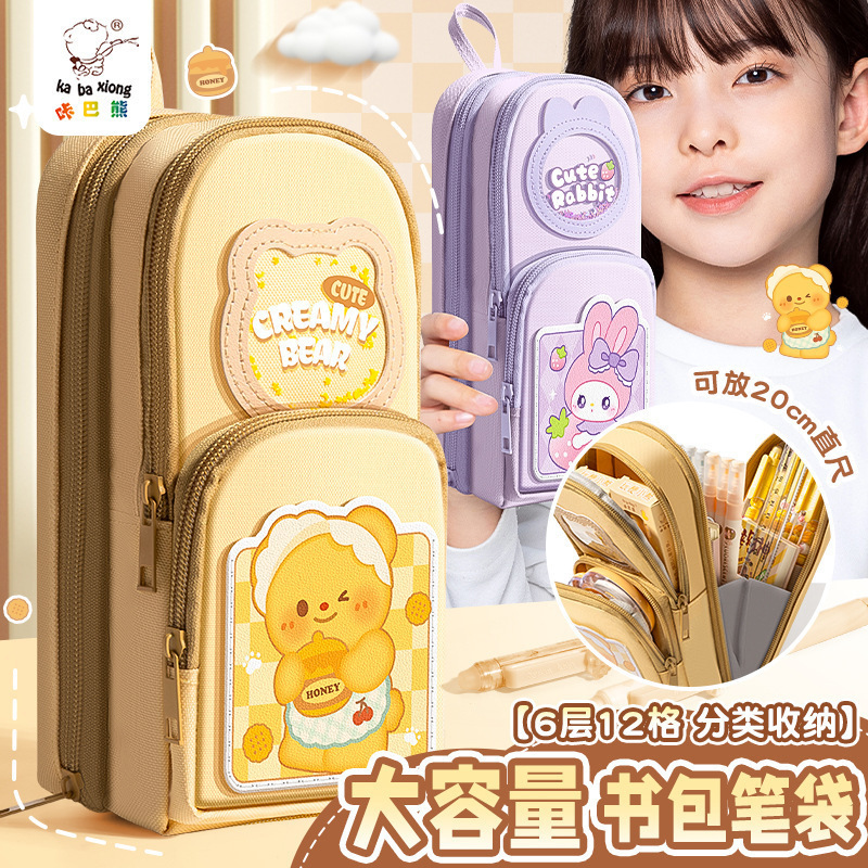 クリーム熊の漫画のかばんの筆袋のアイデアはかわいい大容量の鉛筆袋が汚れに強い子供の小学生の文房具箱です。