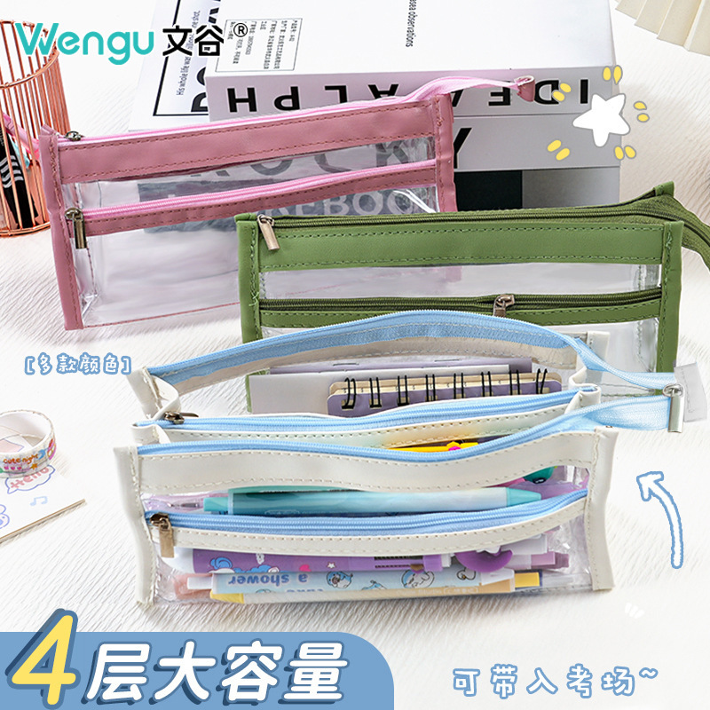 シンプル新四段透明筆袋試験文房具収納袋学生文房具ケースins鉛筆袋大容量