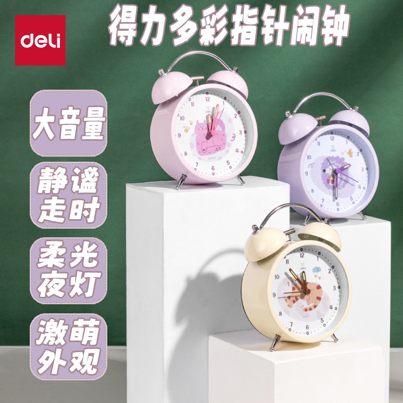 デリ 8836 ポインターベル目覚まし時計学生ミュート発光ノック目覚まし時計かわいい子供の寝室の小さなギフト
