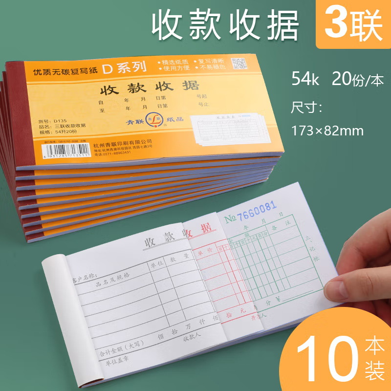 青聯d 135三連多欄式入金領収書には紙パッド20部/本無炭素複写伝票が付属しています。