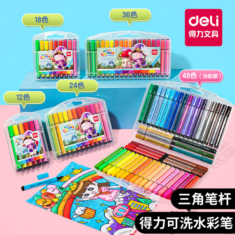 得力直供児童マーカーペンセット48色マークペン学生カラーペン児童画ペン卸売り