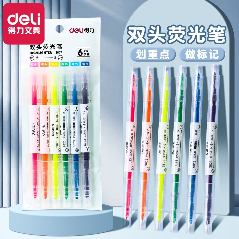 有力s7 36蛍光マーカーペンキャンディー色ダブルヘッド蛍光カラーペンセットマーカー6色/3本