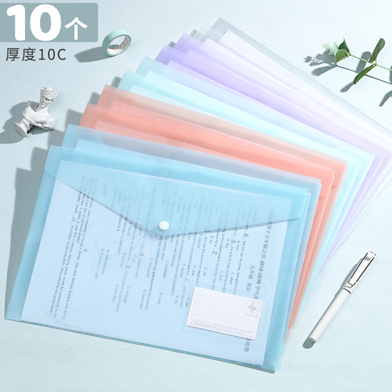 書類袋印刷ロゴ卸売り透明ppカラーボタン書類袋プラスチックa4防水マーク龍色資料袋