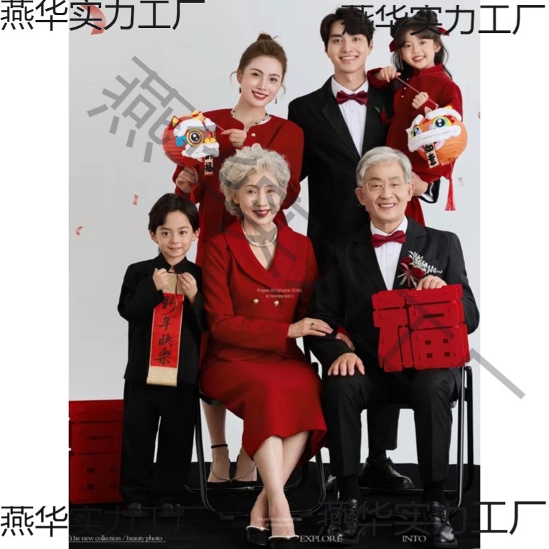 家族の福の撮影の道具の2024新年の家族の福の撮影の立体の福の字の手は巻物を持って新型の親子を持ちます。