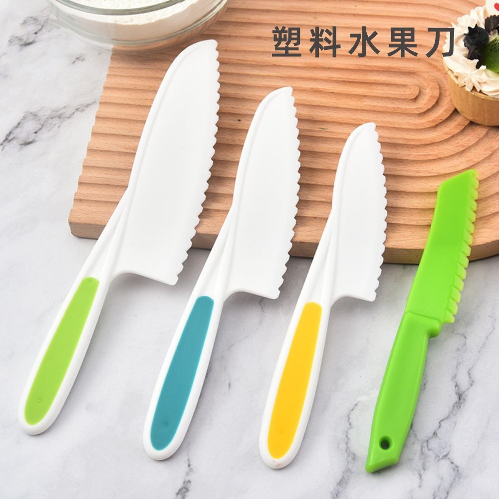 アマゾンの同じタイプのプラスチックの果物の刃物セットは早教専用の子供のおもちゃのノコギリの刀を教えて手のケーキの刀を傷つけません。