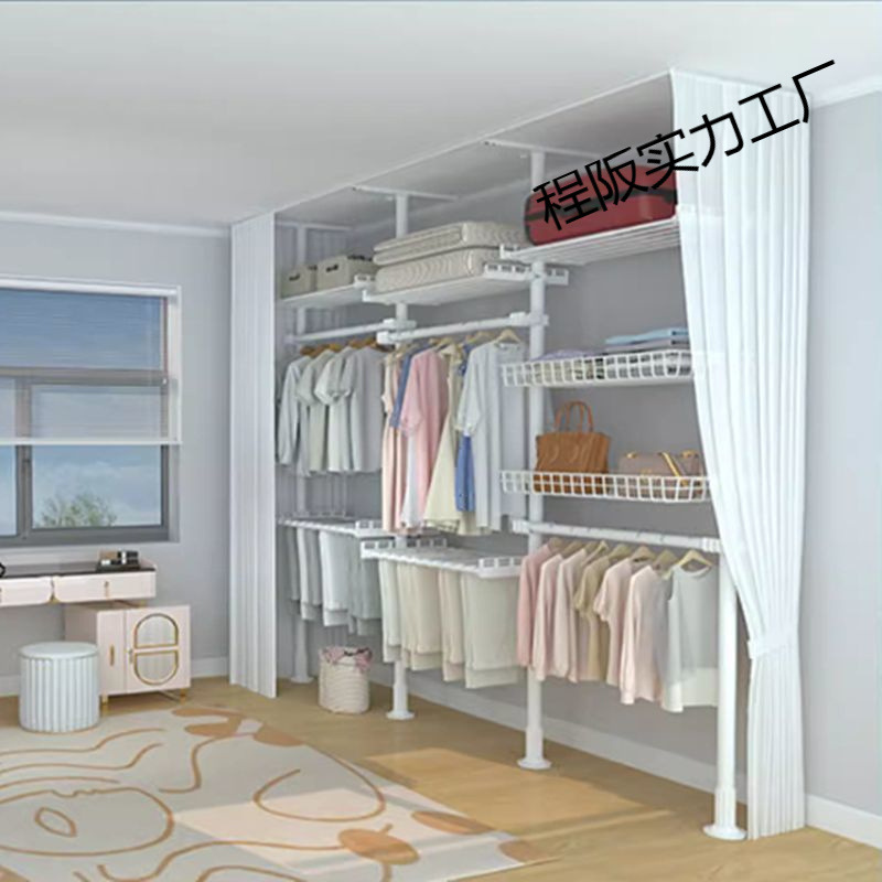 寝室用床置き物干しラック、パンチングなしのワードローブ、伸縮式コートハンガー、衣類ロッド収納ラック