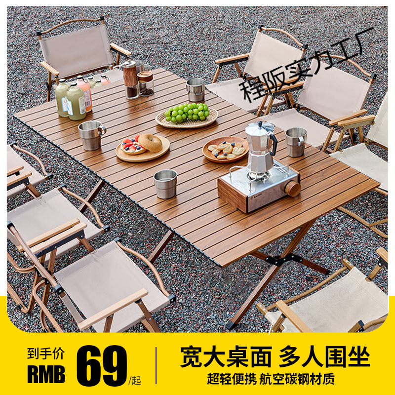 屋外ポータブル折りたたみキャンプテーブルと椅子合金エッグロールテーブルピクニックテーブルと椅子セットキャンプ用品機器テーブル