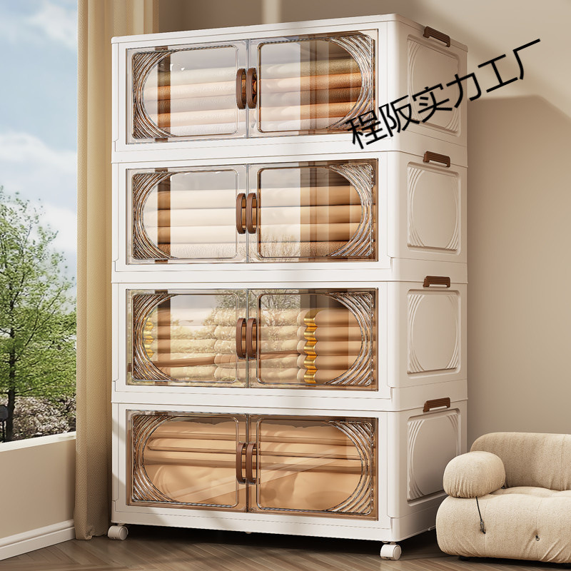 折りたたみ式設置不要の両開きドア厚みのある家庭用大容量収納キャビネット寝室リビングルーム収納ラックキャスター付き収納キャビネット