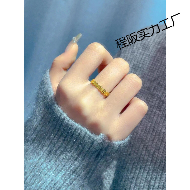 24Kゴールド、富が流れ、富を引き寄せる銅貨リング、女性のファッショナブルなパーソナライズされた人差し指リング、気質インターネットセレブプレーンリングゴールドリング