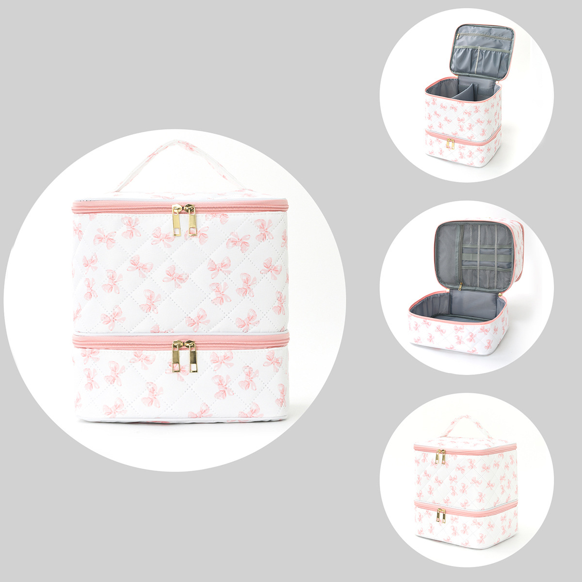 クロスボーダー二層ゴールドワイヤー化粧品バッグ大容量ハイエンドマニキュア収納袋ポータブルハンドバッグ収納袋