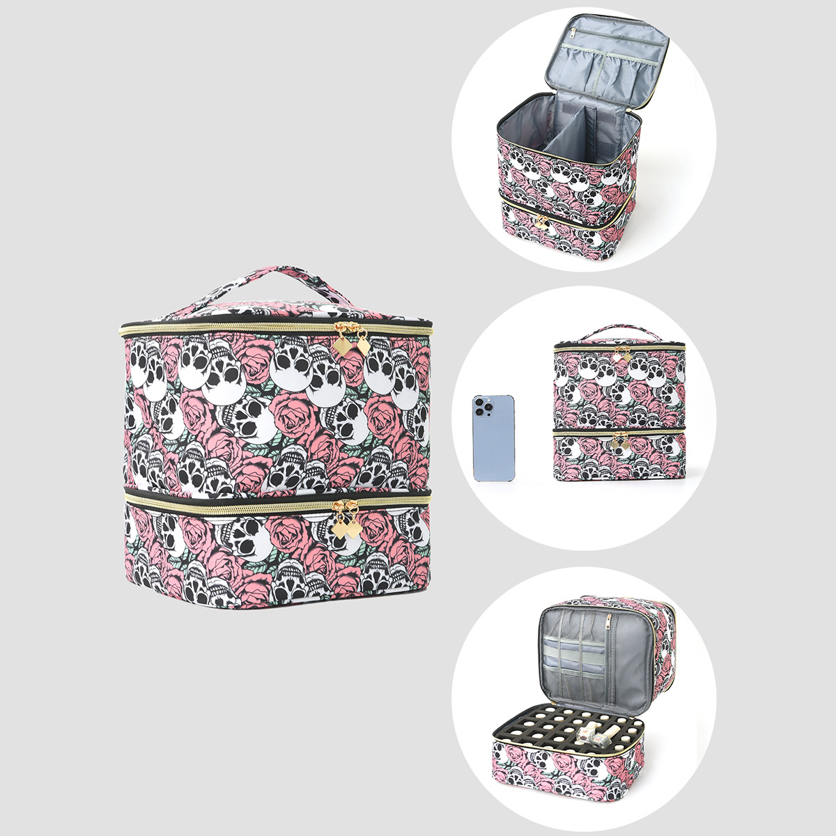 クロスボーダー新しいマニキュア化粧品バッグマルチカラーポータブル大容量二層トイレタリーバッグ高価値シンプルな収納袋